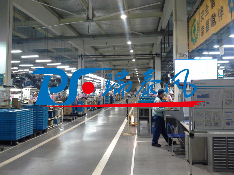 針對(duì)現(xiàn)狀,客戶車間是鋼構(gòu)14米高廠房,符合安裝工業(yè)大風(fēng)扇條件,瑞泰風(fēng)“工業(yè)大風(fēng)扇”專為高大空間降溫通風(fēng)定制,覆蓋面廣,送風(fēng)遠(yuǎn),是高大廠房車間降溫通風(fēng)首選,其降溫原理為,采用自然通風(fēng)涼爽理念結(jié)合現(xiàn)代航機(jī)翼技術(shù),通過巨大扇葉緩慢旋轉(zhuǎn)從而帶動(dòng)全方位氣流的流動(dòng),產(chǎn)生持續(xù)不斷、立體循環(huán)風(fēng),產(chǎn)生自然降溫效果。我們給客戶加裝4臺(tái)7.3米直徑瑞泰風(fēng)大型工業(yè)風(fēng)扇,每分鐘每立方米平均13500的送風(fēng)量。4臺(tái)總共54000CMM立方/分鐘送風(fēng)量,有效改善了現(xiàn)場(chǎng)環(huán)境,帶動(dòng)高大空間空氣流動(dòng),通風(fēng)涼爽,效果明顯。客戶非常滿意。